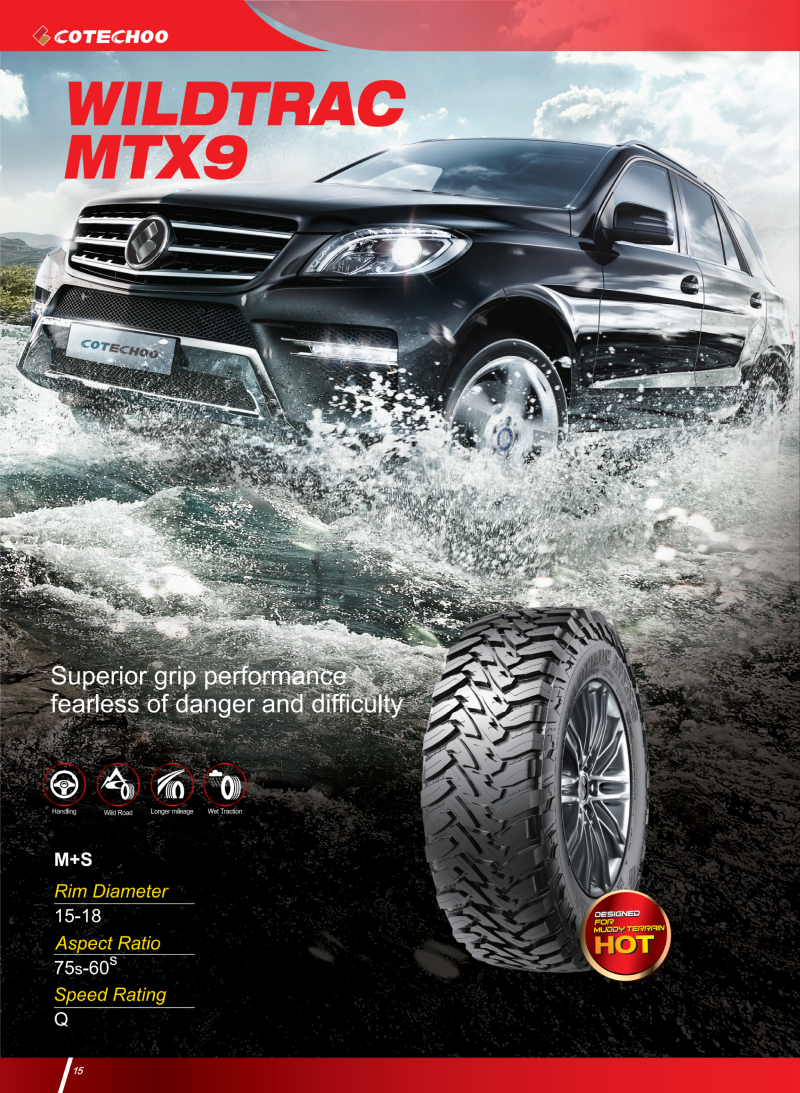 火焰型大塊花紋,是一款用于極限越野的輪胎,惡劣路況下提供超強(qiáng)的驅(qū)動力、泥地防滑性能。