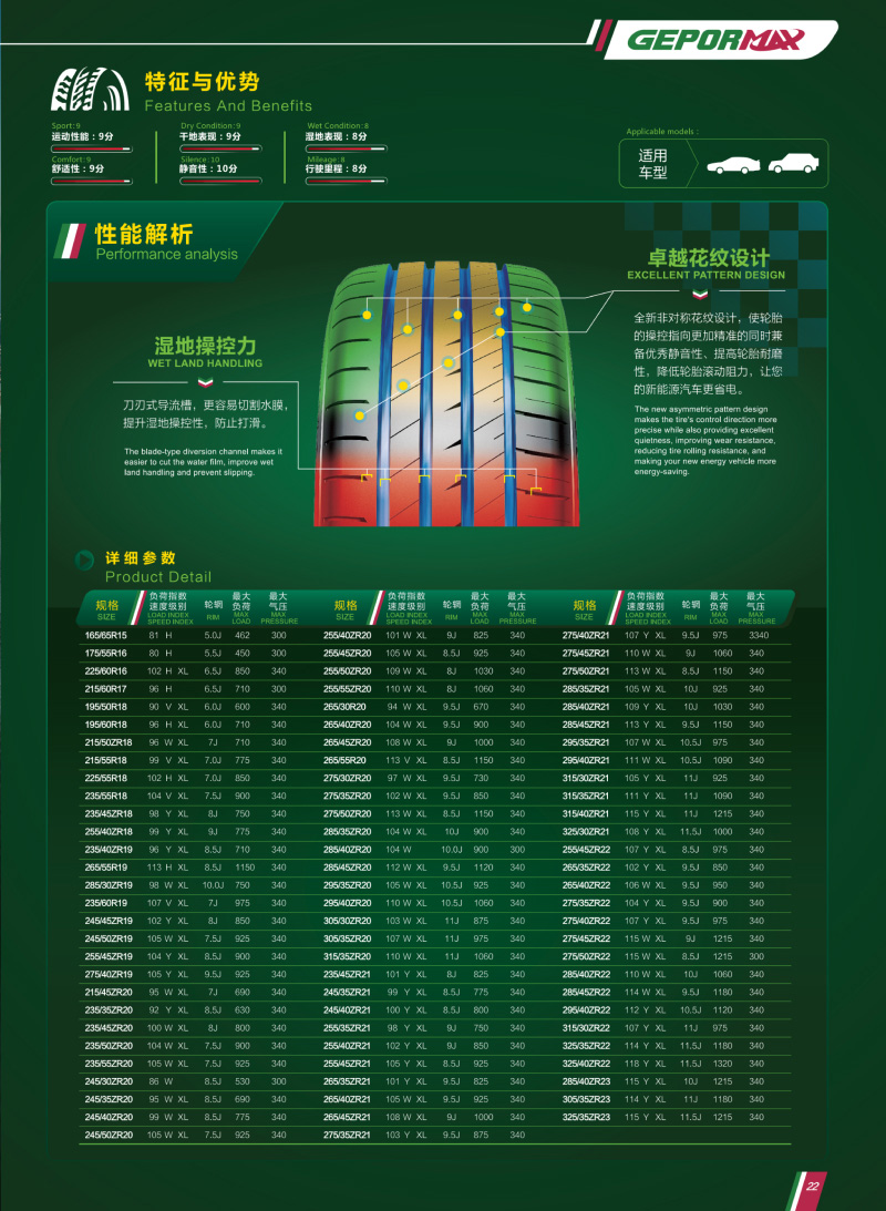 新能源汽車用EV輪胎,全新花紋設計,具有良好操控性與優(yōu)秀靜音性,低滾阻配方,讓您的新能源汽車更省電。