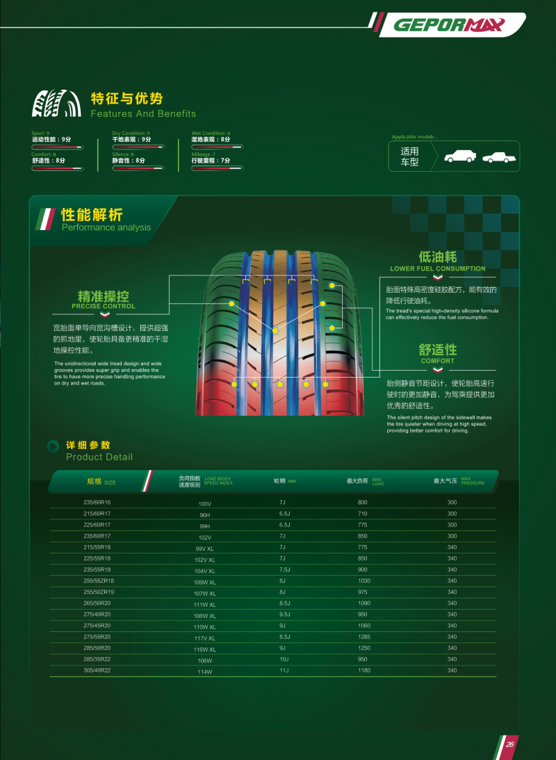 SUV專用輪胎,靜音胎面,超強抓地設計,精準操控。