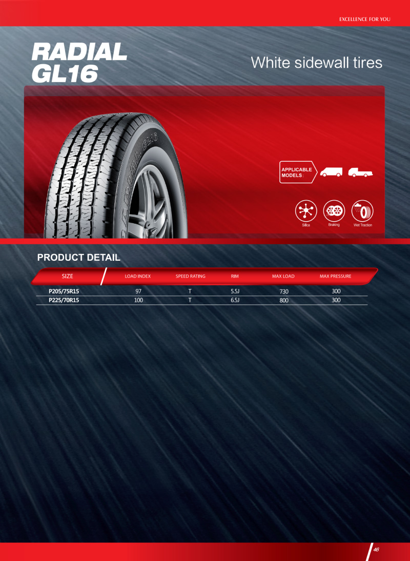 胎側(cè)白環(huán)裝飾,汽車行駛更受矚目,獨特花紋設計,具有良好的排水性能和制動力